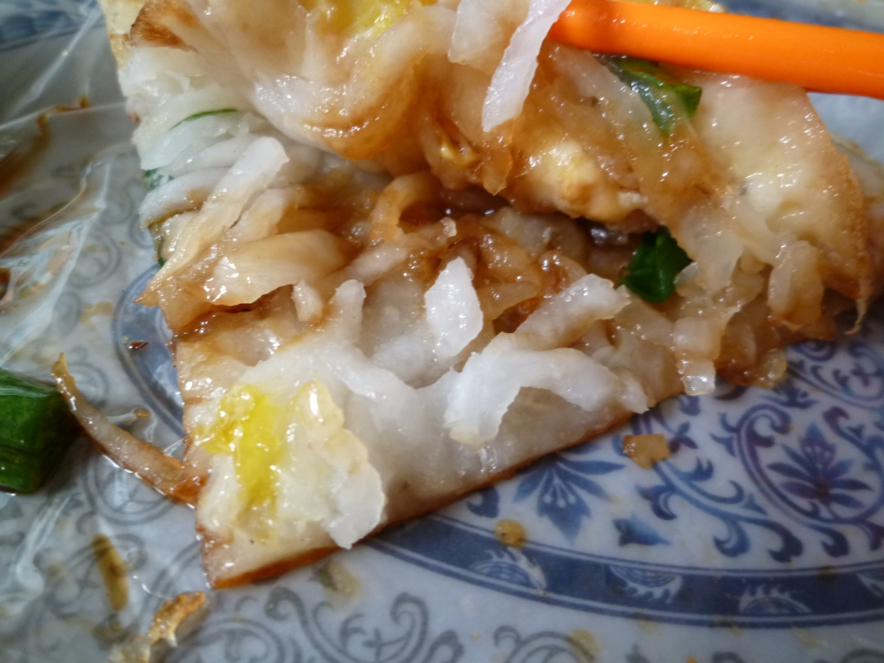 小麦粉の生地に大根の細切りが挟んであるような