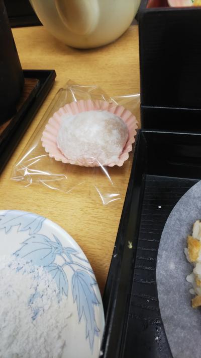 昼食の前にフルーツ大福作り。今の時期はみかんのようです。まずはお手拭き...