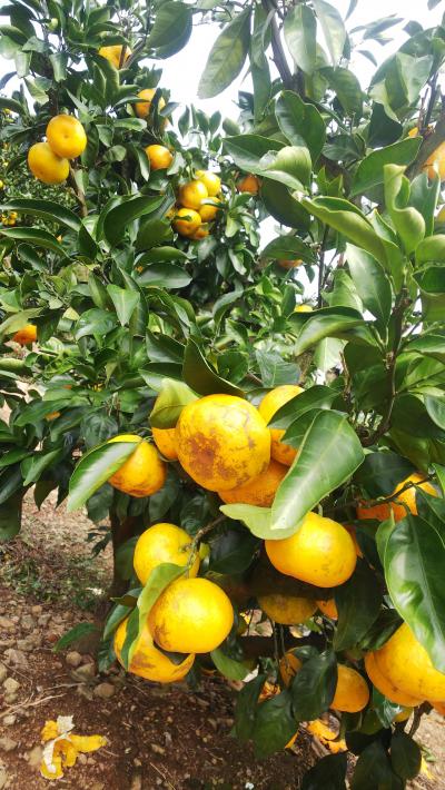 丘の所にたくさんみかんがなっています。旦那は、ビールも飲んで、私のご飯...