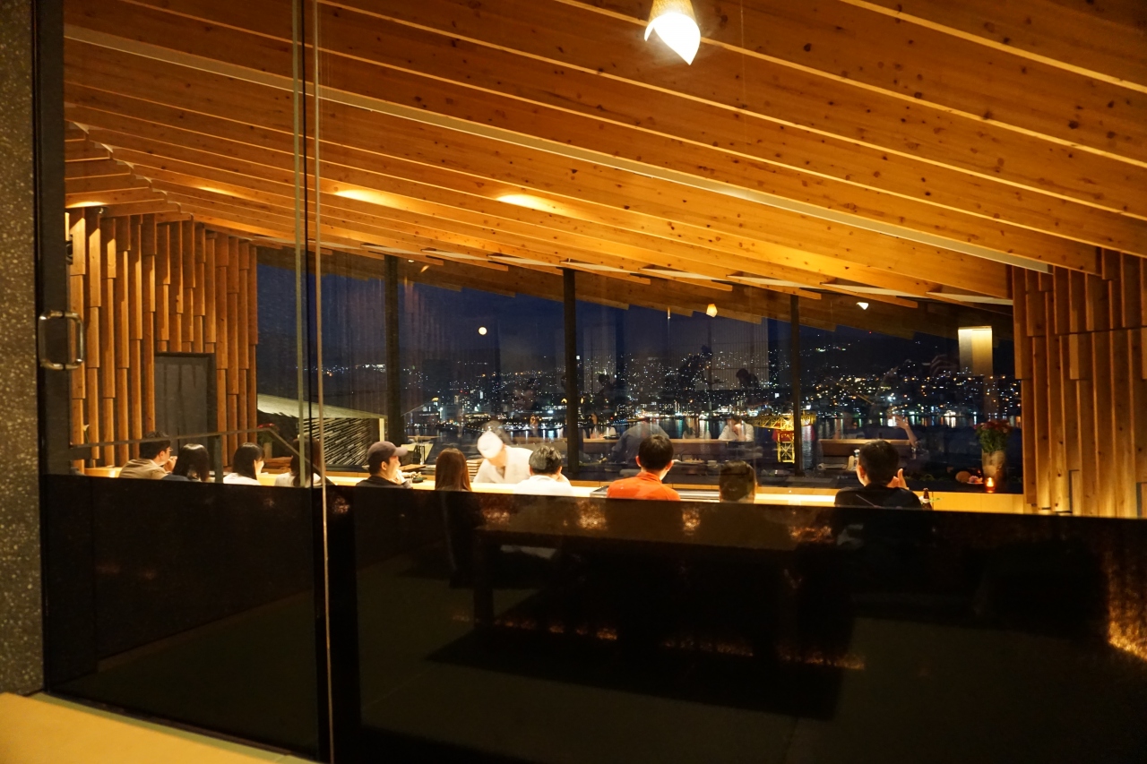 お部屋からもレストランからも夜景が綺麗に見える設計でロケーションは最高。