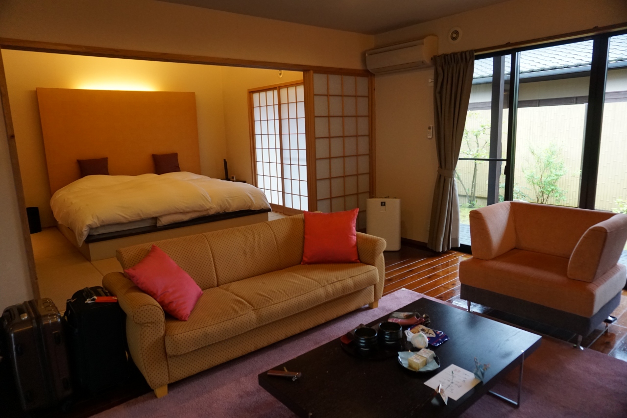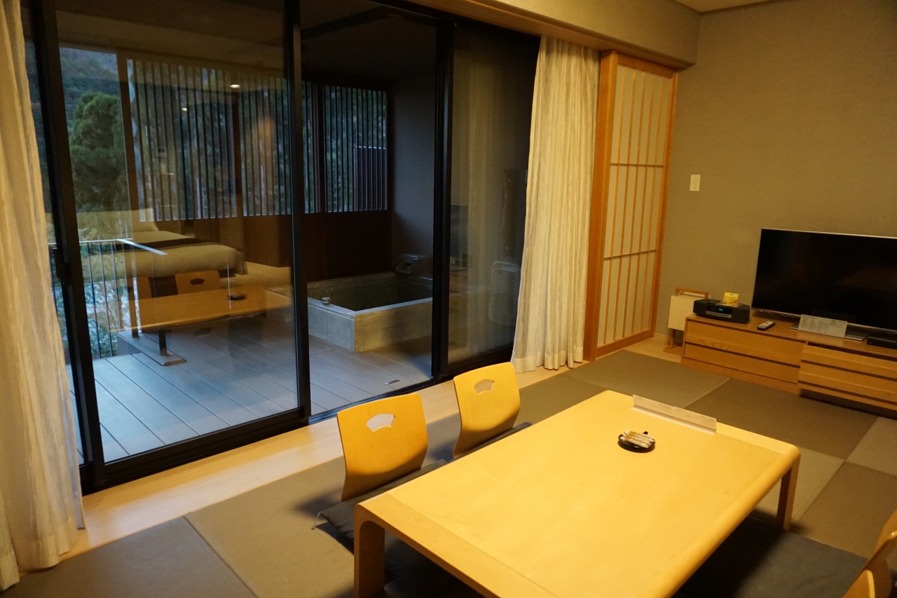 お部屋は温泉露天風呂付の贅沢な広さのお部屋でしたが、少しだけ古さを感じました。