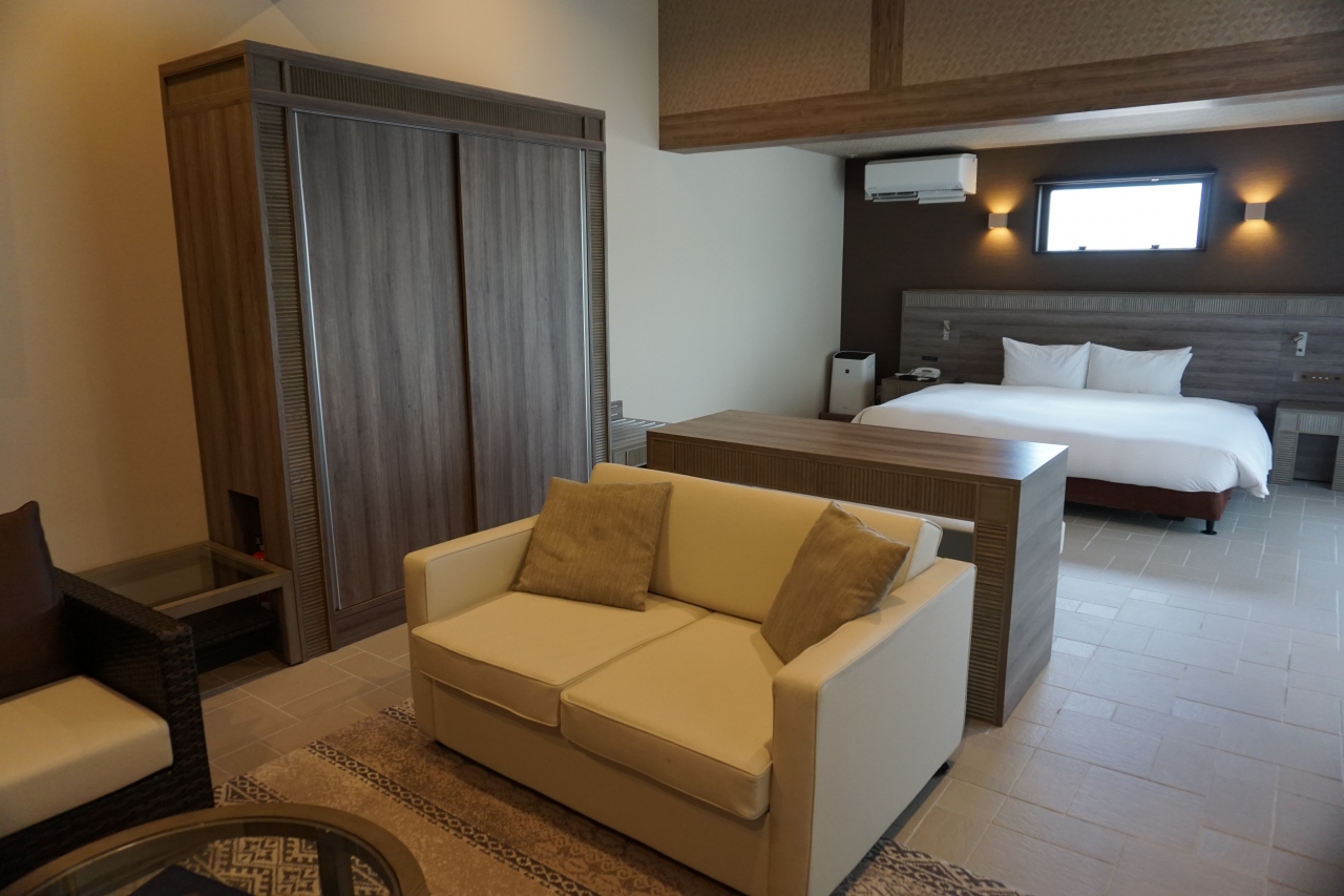 新しくて綺麗で良かったです。プライベートプール付きの「くむいの宿」に宿泊。プールは少し小さめでしたが、部屋は広くて快適に過ごせました。コテージのような造りなので、ホテルのプールへも水着のまま行って帰ってこれるし、とても良かったです。ロビーにはウェルカムドリンクがあるのですが、オリオンビールも置いてあるし、部屋の冷蔵庫にも初日に入っている分だけでしたが、オリオンビールとさんぴん茶がサービス。大浴場の前には無料のアイスも置いてありました。大浴場にもタオルが置いてあるので、部屋のを持って行かなくて良いし、ビーチタオルもお借りして海水浴に行ったり出来て、便利でした。レストランの食事も美味しかったです。こうしたらいいのにな~という所は、「くむいの宿」だけかもしれないですが、水回りが少し使い辛かった事。これは容易には改善出来ないと思うので仕方がないですが、バスルームと洗面所が一緒になっているのは少し使い辛かったです。他の口コミにも書いてあるのですが、お部屋の清掃時間が選べないのはちょっと改善して欲しいかもですね。一応外出時に部屋の清掃をお願いすると帰りの予定時間を聞かれて、戻ってきた時間には終了していたので、改善はしてくれてると感じましたが。それとバスルームに水着などを干せるようなロープがあると便利だと思いました。レストランはランチ営業がないので、宿で1日中過ごしたい時は、不便だなと思いました。総合的にはとても良かったので、また宿泊したいなと思いました。