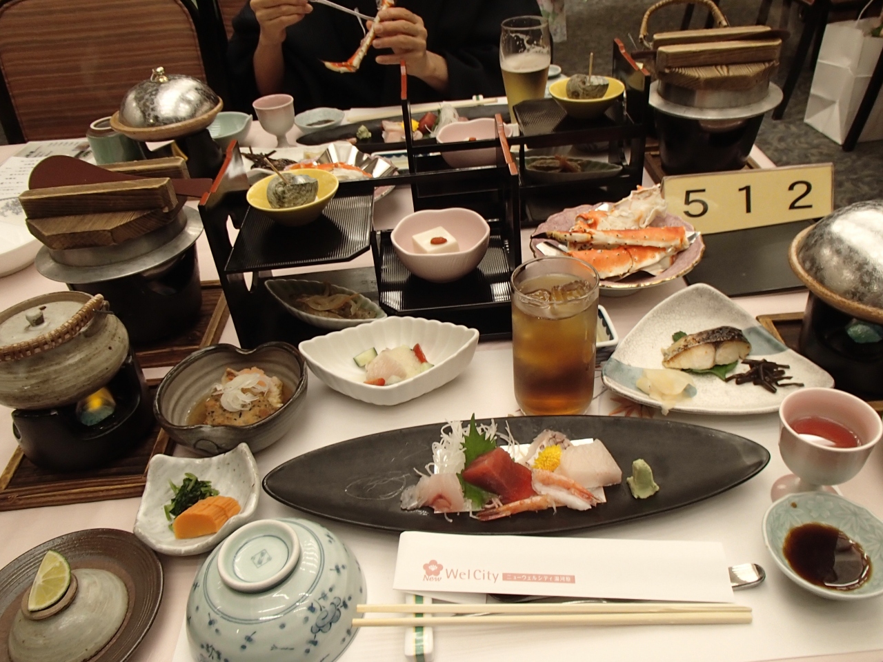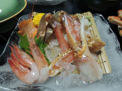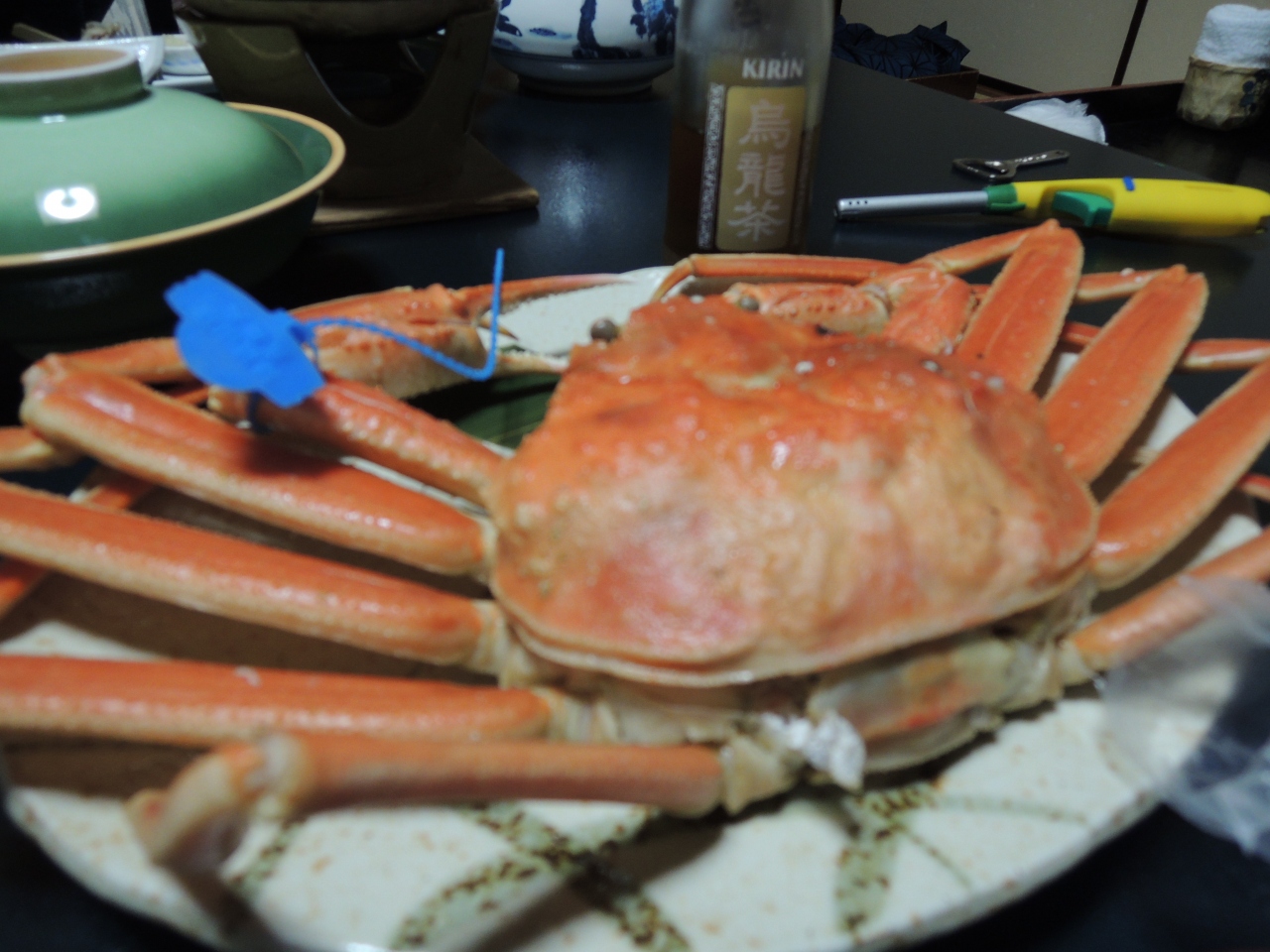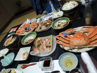 カニ刺しから始まり茹で、鍋、天ぷらなど本当にカニづくしでしばらくはカニはいらなくなりました(笑)一人2.5杯のカニコース(タグ付き松葉カニ付き)、27,000円くらいでした。