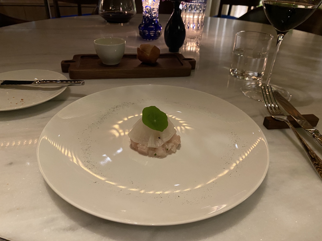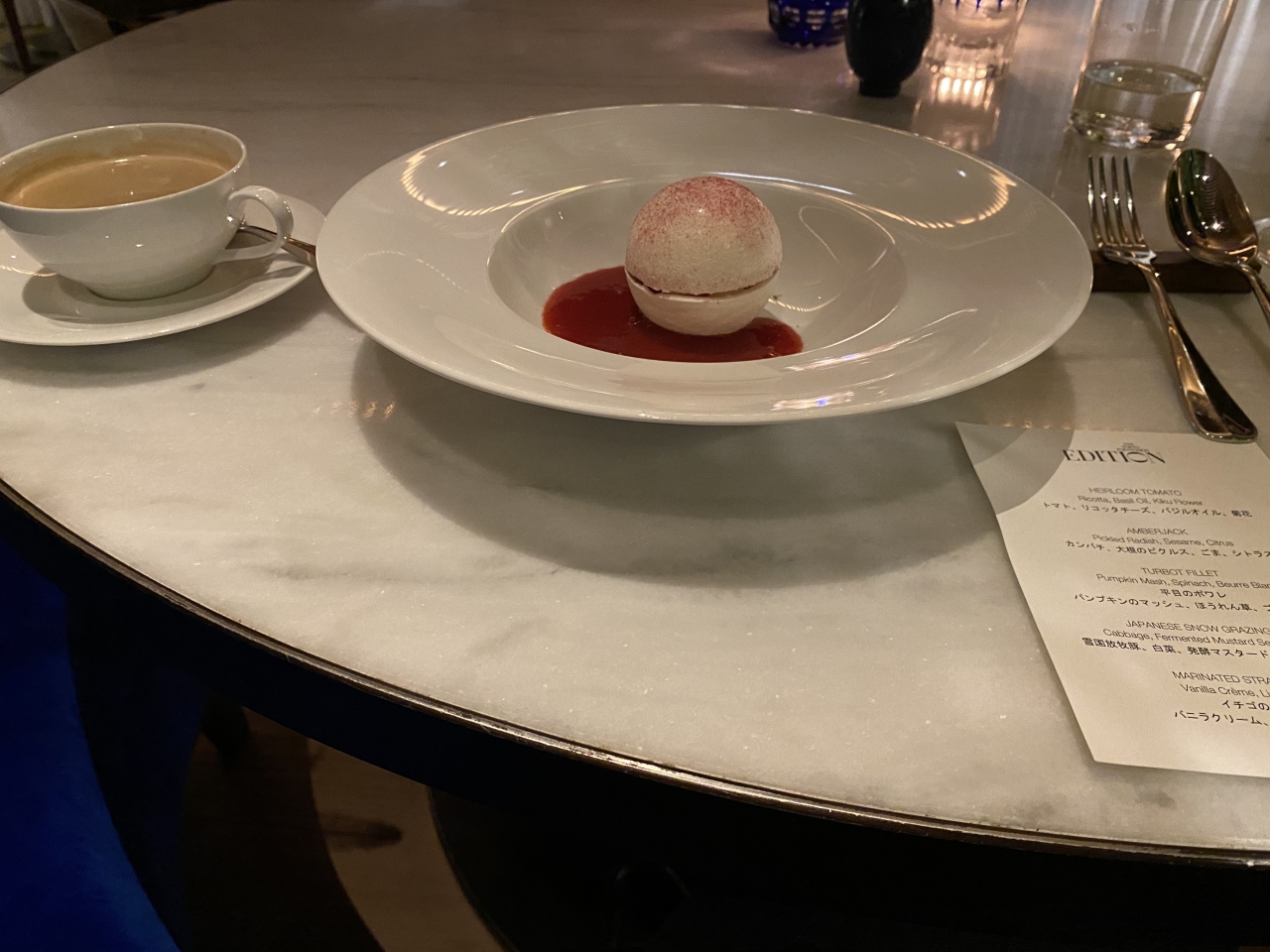 エレガントなスタッフ、ソムリエ、気さくなシェフ、また六本木に用事ができれば予約して参上したいと思いました
