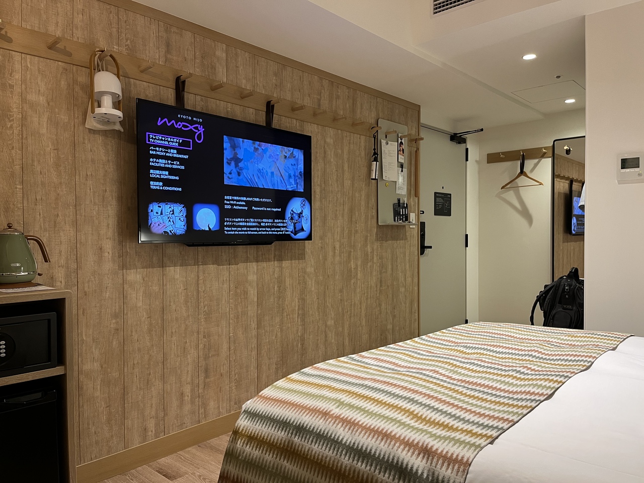 久々に京都に行く機会があり、値段がたまたまか、とてもリーゾナブルだった事もあり初めて京都のモクシーを利用しましたらとても良いホテルでした。場所は二条駅前で地下鉄だと三条から4つ目の駅でした。ホテル近くには三条会商店街と言う長い距離の昔ながらの商店街アーケードの入口がありその通りはそのまま三条通りです。私は新風館に用事があったのでモクシーまで行きはタクシーでしたが戻りは商店街を通り新風館までウォーキングしました。