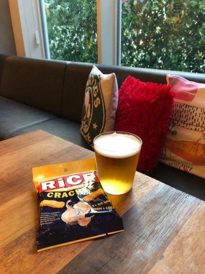 一階カフェで札幌クラシックやワインやナッツ、北海道ポテチを振る舞って頂いた