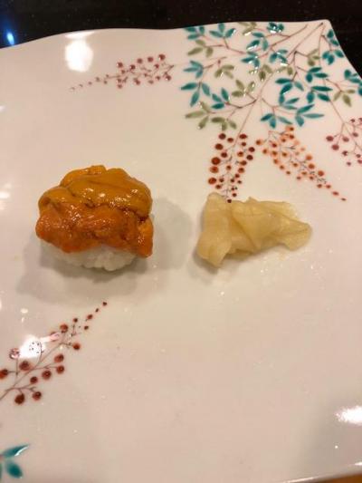 お刺身やつまみをいただいた後、なめら、白えび、いわし、ぶり、バイ貝、とろ、かます、いくら、うに(と赤イカ)、最後にあなごでのどぐろ巻物、といわれ、
