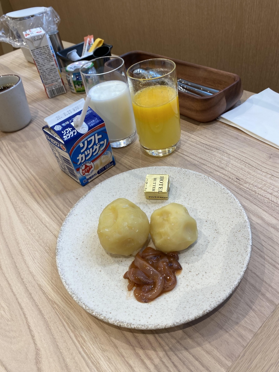 タイトルにも書いた様に素晴らしいレストラン朝食で、エッグステーションでは3種のエッグベネディクトを楽しめ、ホクホクじゃがいもにイカの塩辛バターも楽しめ、カツゲン飲めるし、自分でアレンジしてフェアフィールド札幌スープカレーも楽しめます