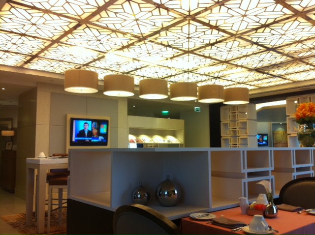 シェラトンクラブラウンジはあり、そこには中庭があって良い。タバコを一服など。