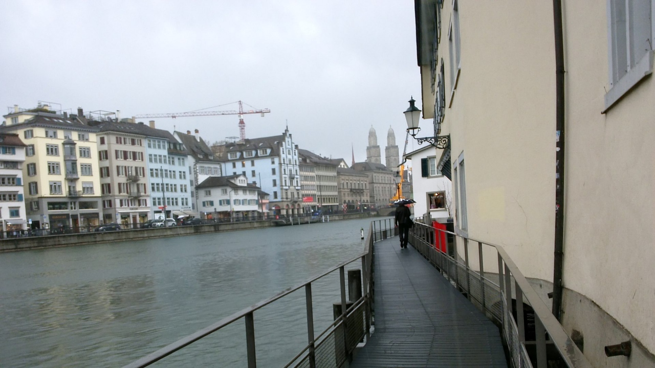 チューリッヒはこのチューリッヒ湖からの川がいくつか伸びており、私はその川沿いに歩くのが気に入りました。