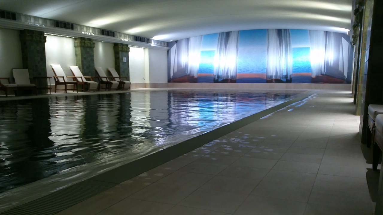 Spaエリアは地下にあり、美しいプールや、サウナあり。