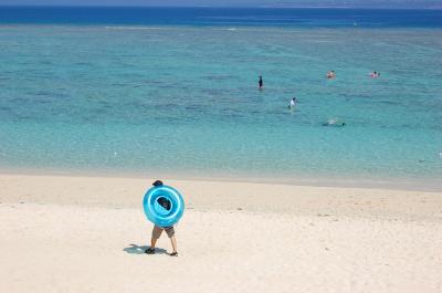 まずは瀬底大橋を渡ってすぐにあるパーキングに車を入れて橋の上から海をしばらく眺めた後、瀬底ビーチへ向かう。昔に比べると随分と変わってしまったと聞いていましたが、それでも息を呑む美しさ!!