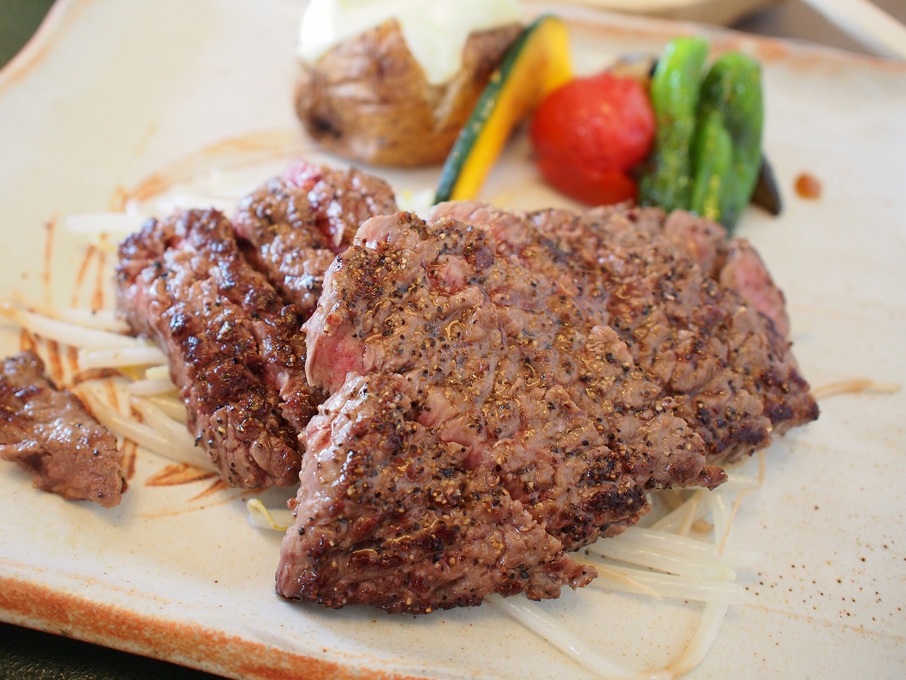 我が家は赤身のステーキ定食とロース肉使用のステーキ御膳をいただきました。