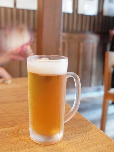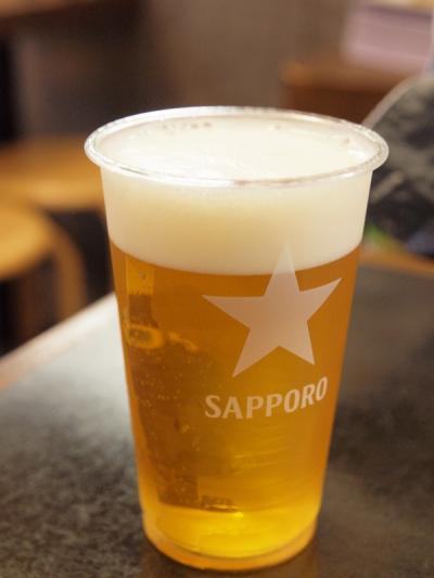 ビールだけならプラスチックのコップに入れてもらって立ち呑みがいいと思います。