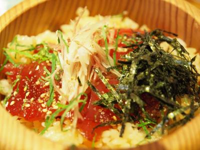店頭でマグロを買い求める人が集まっていたのでこちらでランチを食べることにしました。