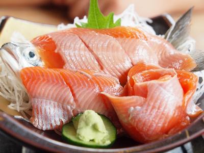 ひめますの刺身は綺麗なサーモンピンクでおいしかったです。