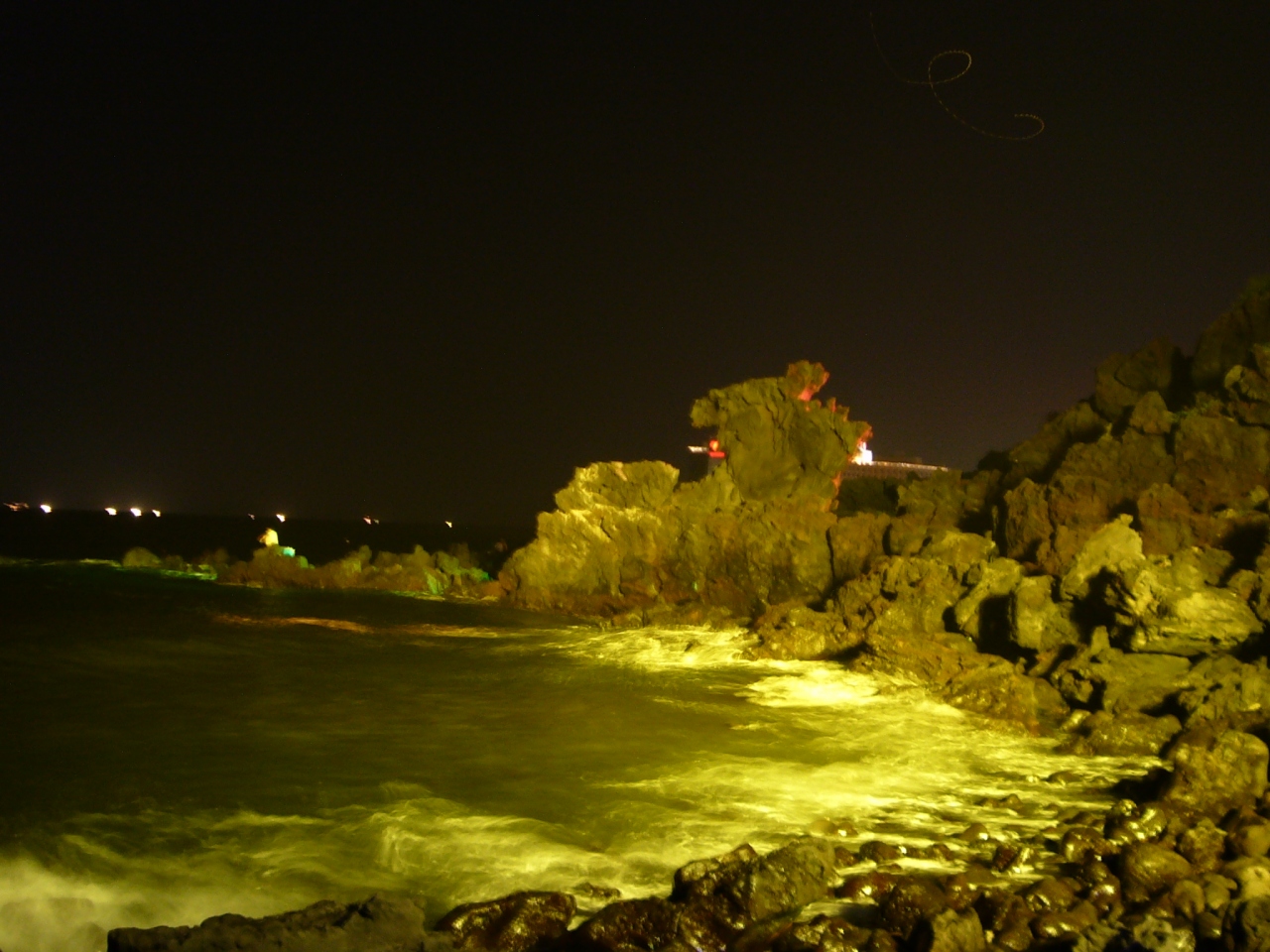 夜、ライトアップされた龍頭岩を見ようと行ってきました。