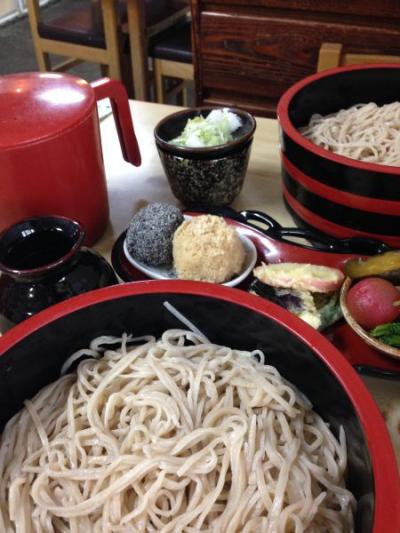 楽しみにしていたくるみペースト付きのざる蕎麦、天ぷらと人気だというくるみのおはぎを注文。