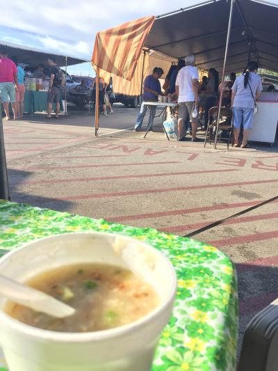 食べ物のお店がたくさん出てるのでBBQやおかゆ、豆腐のスイーツなんかを買って食べましたが、どれも美味しかったです。そんな感じで気付けば1時間。日差しがすでにモーレツに暑いのでレアレアトロリーのお迎えでホテルに戻りました。
