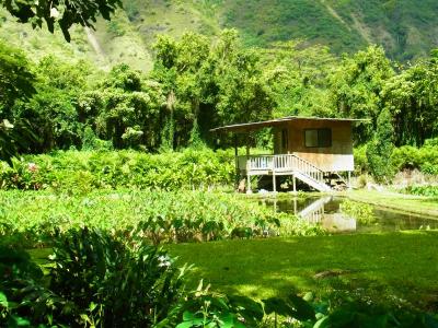 渓谷の下にも人が住んでいるということですが、普通の民家が建っています。タロイモ畑が広がり、道の脇には色んなフルーツの木があり、ガイドがフレンドリーに説明してくれました。