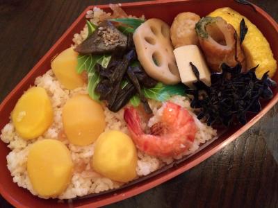 おかずもいろいろ入っていて、昔なつかしい、エビのにつけがおいしかったです。