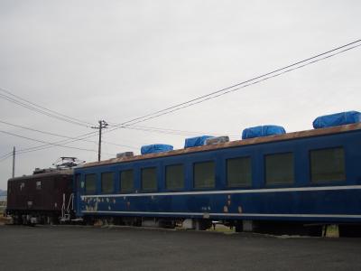 駅には電気機関車と、今はライダーハウス(要予約)として使われている客車。