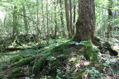 およそ1150年前の富士山の噴火によって流れ出た溶岩の上に広がる森。