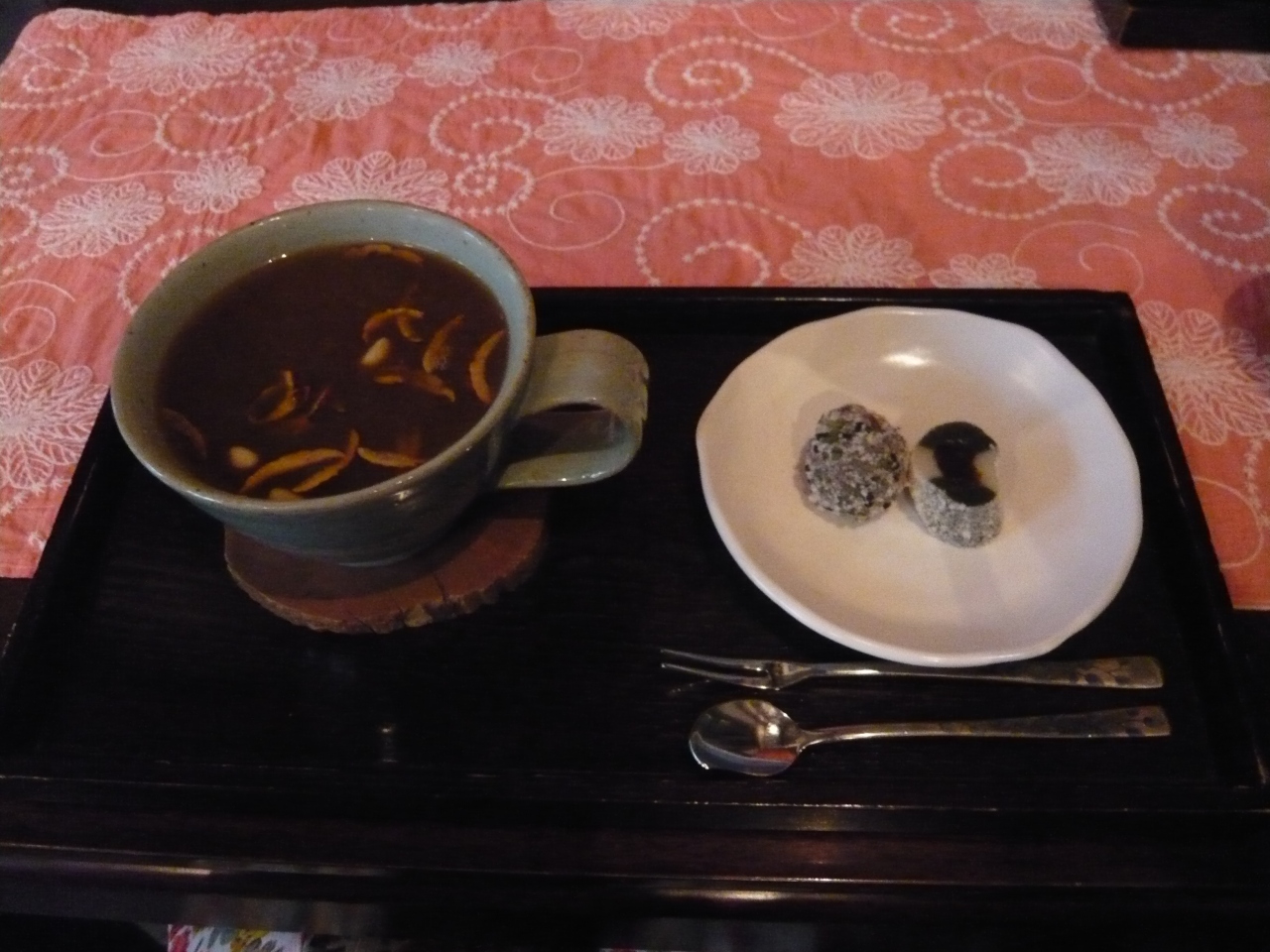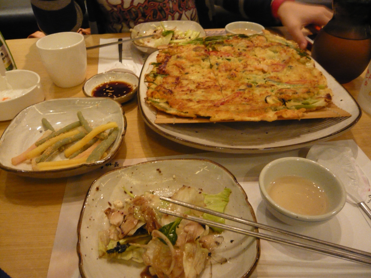 お通しのおモチと、チヂミ、豆腐サラダを頼んで二人で約2,000でした。