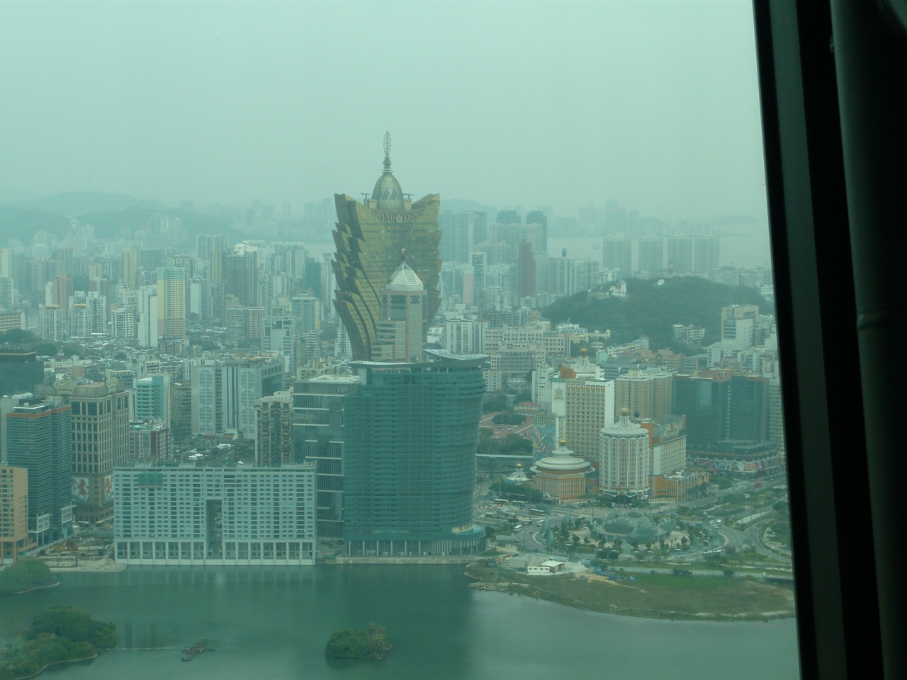 マカオを一望できますが、天気や黄砂の影響もあるのか、全体的にぼんやりしています。
