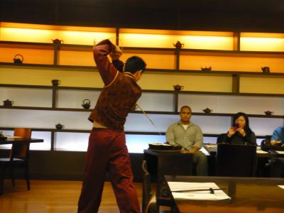 パフォーマンスティは、茶葉を選ぶと、茶葉が入っている湯飲みにいろいろな形でお湯を注いでくれます。そして、このお茶が約70円くらいで、お湯のおかわり出来ます。