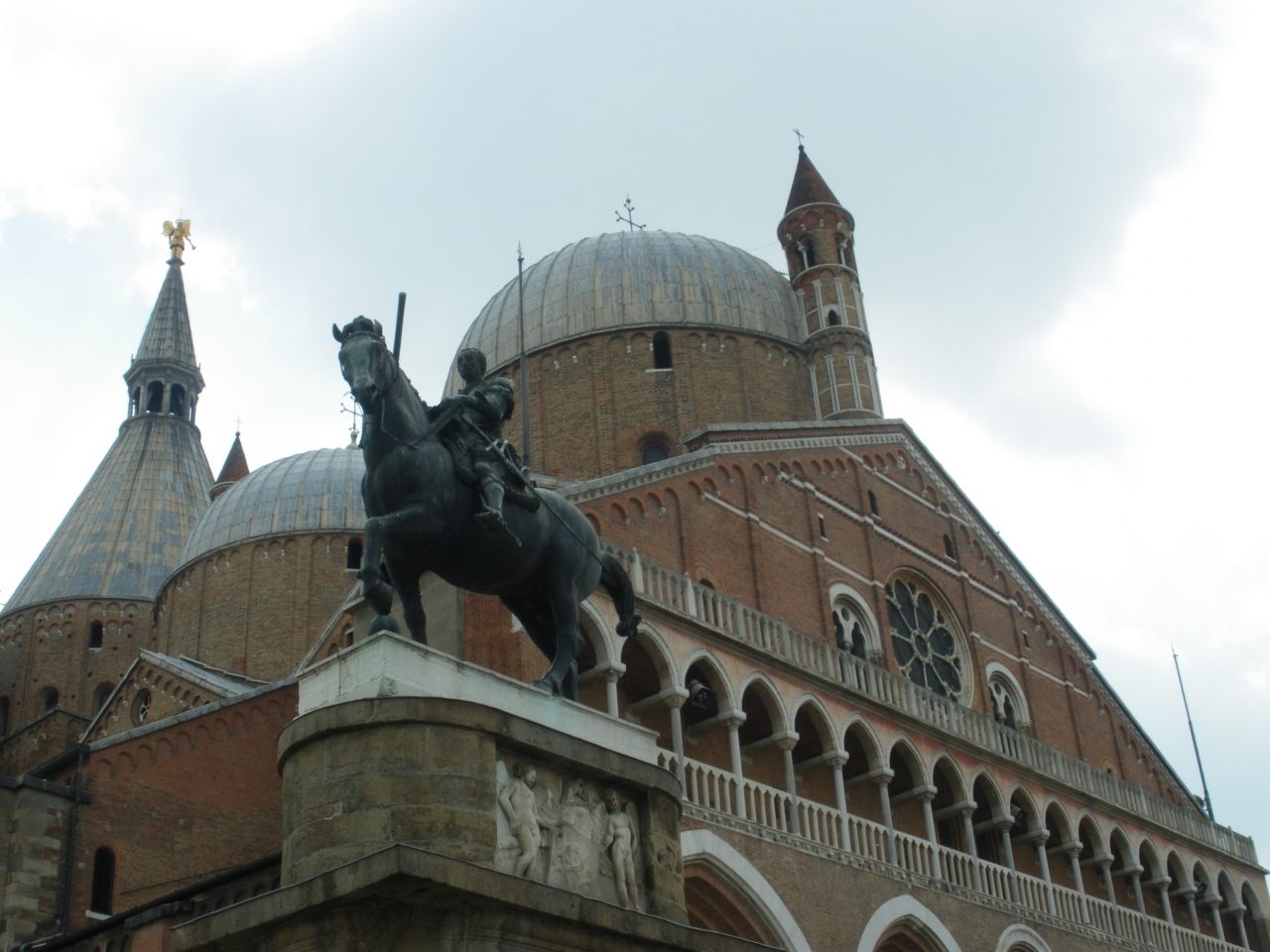 寺院の外の広場にある騎馬像『ガッタメラータ』は、ドナテッロ作です。寺院の中、1895年に改装された祭壇の上にも、寺院内のあちらこちらに散らばっていたドナテッロの作品が集められてありますので、お見逃しなく。ただ、ミサが頻繁に行われ、ミサの間は見ずらいと思います。