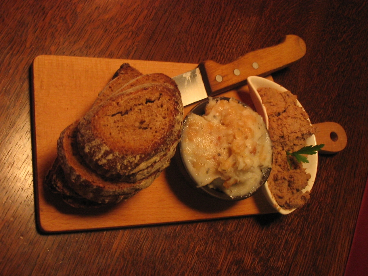 まず席に着くと出してくれるのが、このパンと二種類のペースト。そして食後には、デジェスティブのリキュールも…。