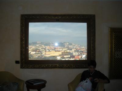 丘側の方の窓は、金の大きな額縁にガラスがはめ込んであるタイプで、朝ベッドから起き上がると、外の景色がまるで絵画のように目に映りとても素敵です。