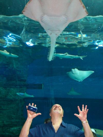 トンネル型水槽を泳ぐ大きな魚たちを頭上に見て、わくわくしました。