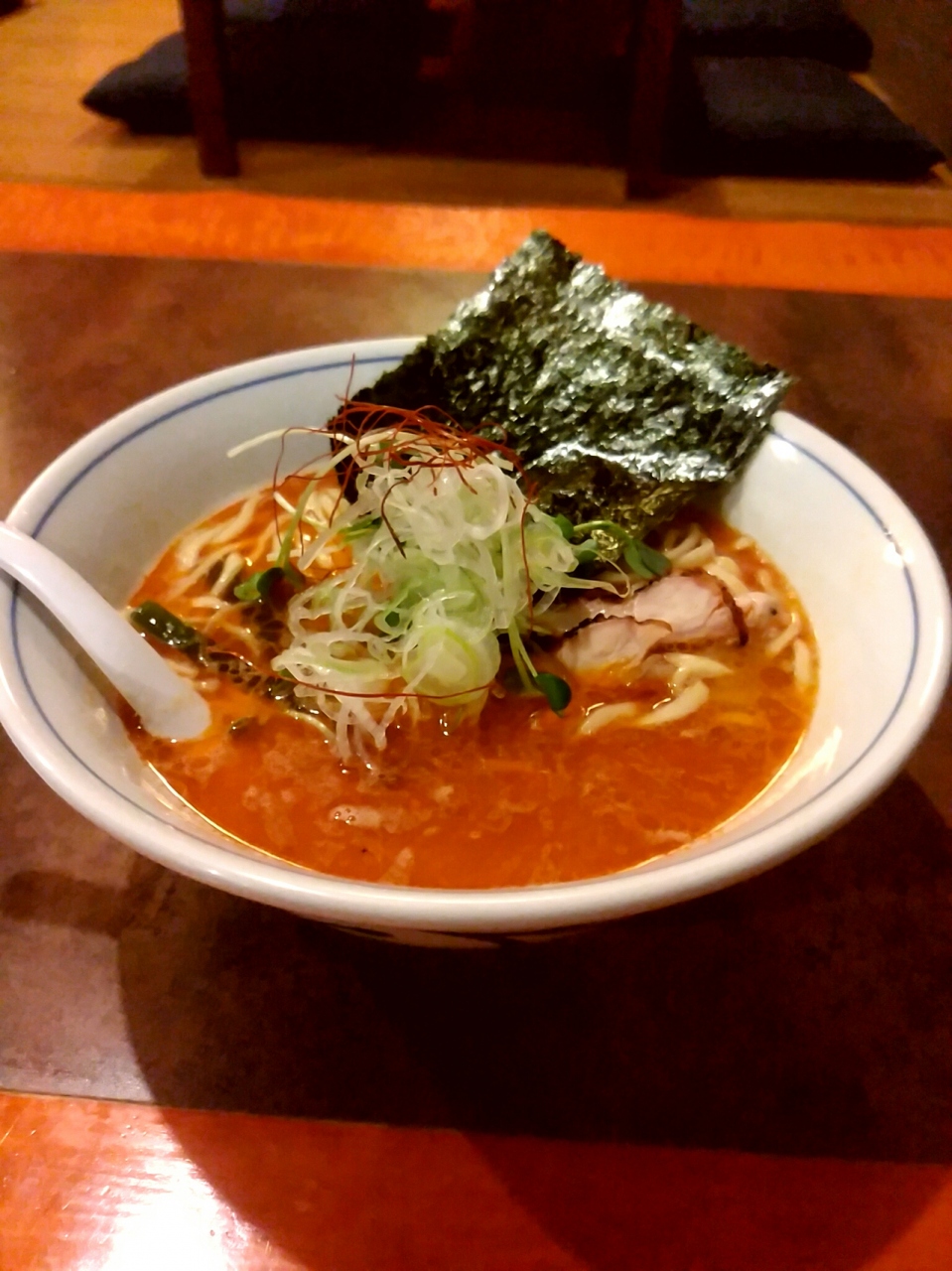 前から行きたいと思ってましたが機会が無く今回ようやく訪問できました。時間は夜9時過ぎでお客さんは自分の他に1人だけでした。初訪問なので本来は定番の鶏そばを頼むところなのですがあっさり系は好みではないので刺激を求めて赤鶏そばを注文。麺は腰のある太麺で適度な太さです。スープも激辛と言うわけではないですが程よい辛さで飲み会後の締めにはピッタリでした。また来たいお店です。