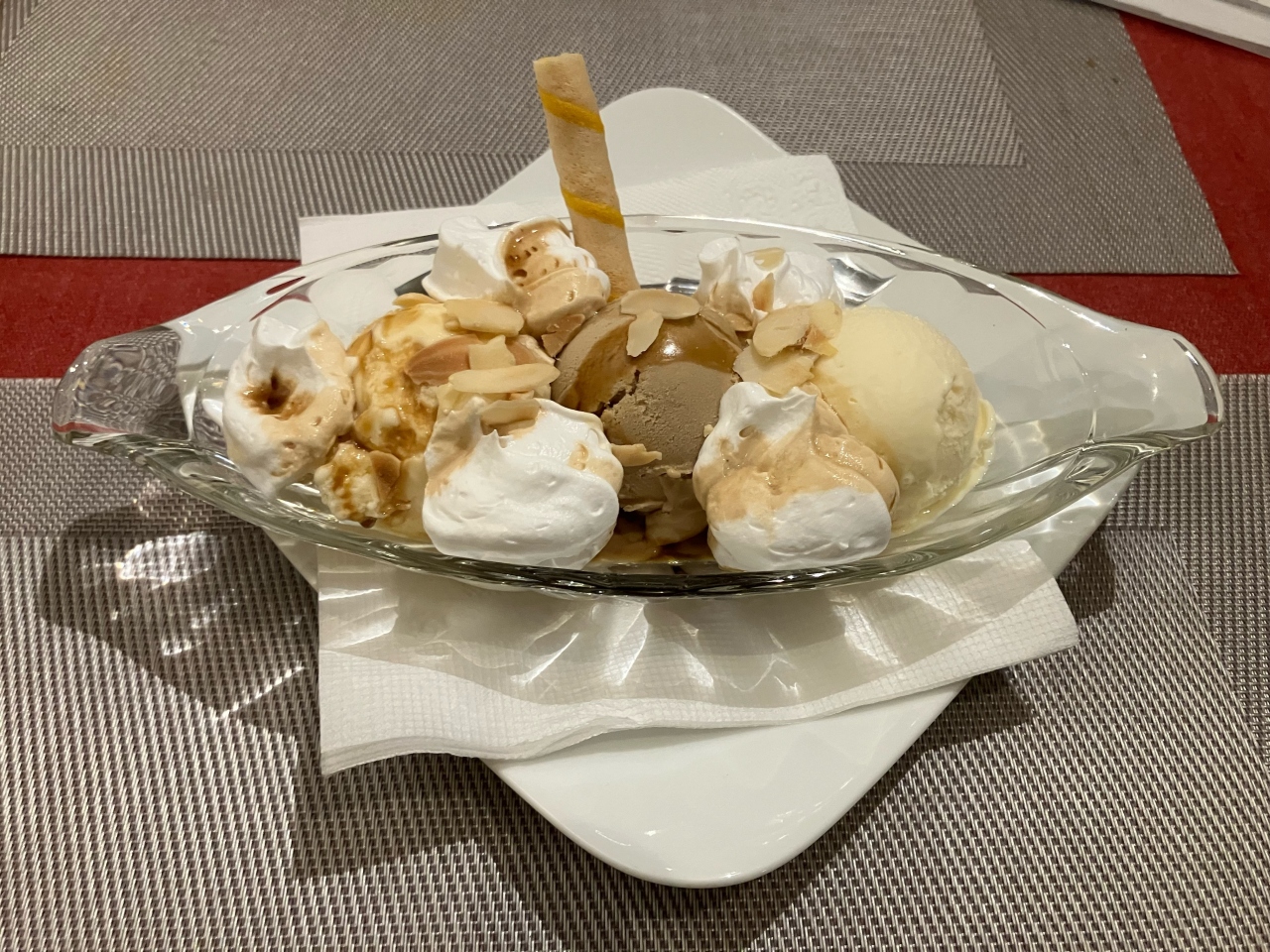 料理は薄味。オリーブオイルやバルサミコ酢やベトナム調味料他で調節できる。フランス語学校の敷地にあるので味に間違いは無いはず。