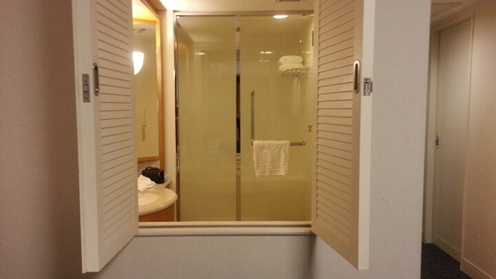 面白かったのは洗面室の横のドアを開けるとベッドルームが見える窓がありました。