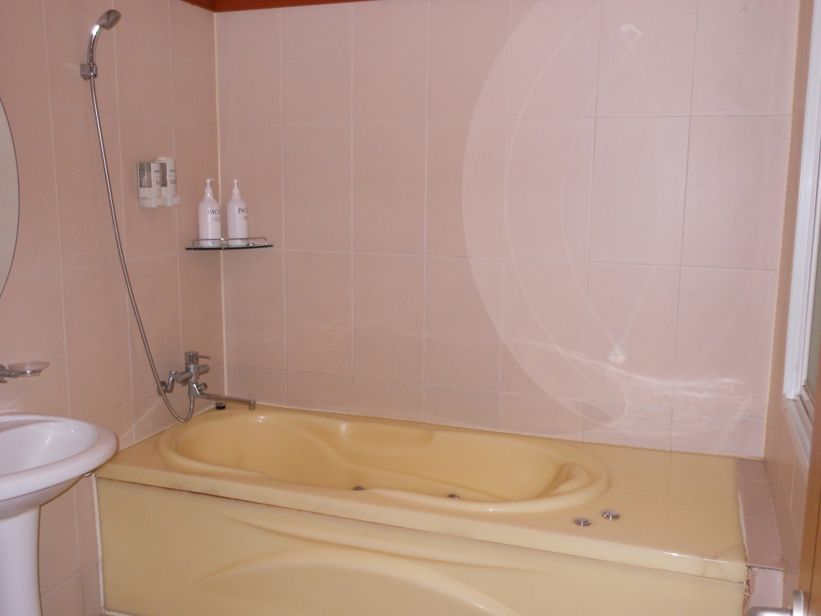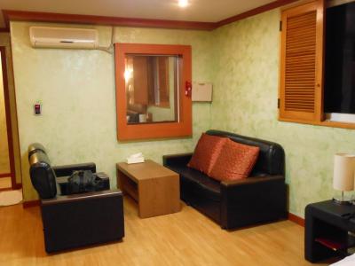ラブホテルを改造しているため、部屋は広いですが、窓は小さい。バスルームにはジェットバス有り。
