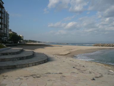 夏には海水浴も楽しめる、海に面した温泉ホテル