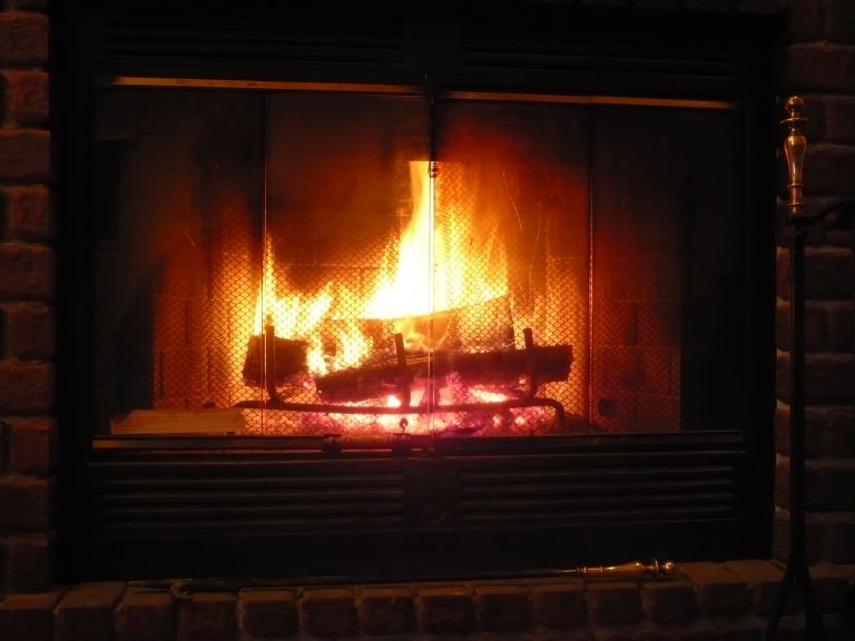 リビングには、薪をくべる本格的な暖炉があり、とても和めます。