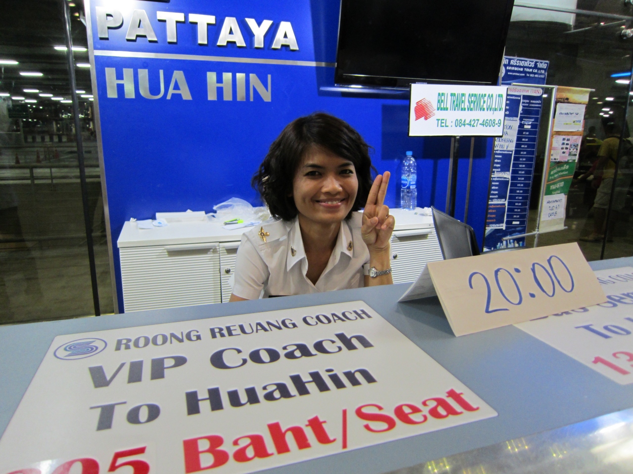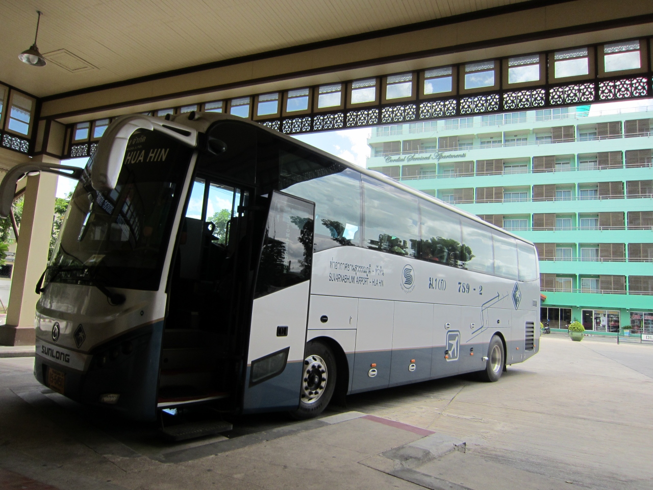 バンコク空港1階ターミナルから直接バスに乗れて、ホアヒン行きは大変便利です。