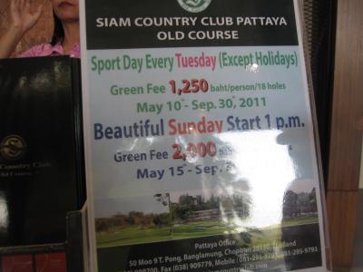 平日グリーン費; 800B....金曜日スポーツディグリーン費;600B