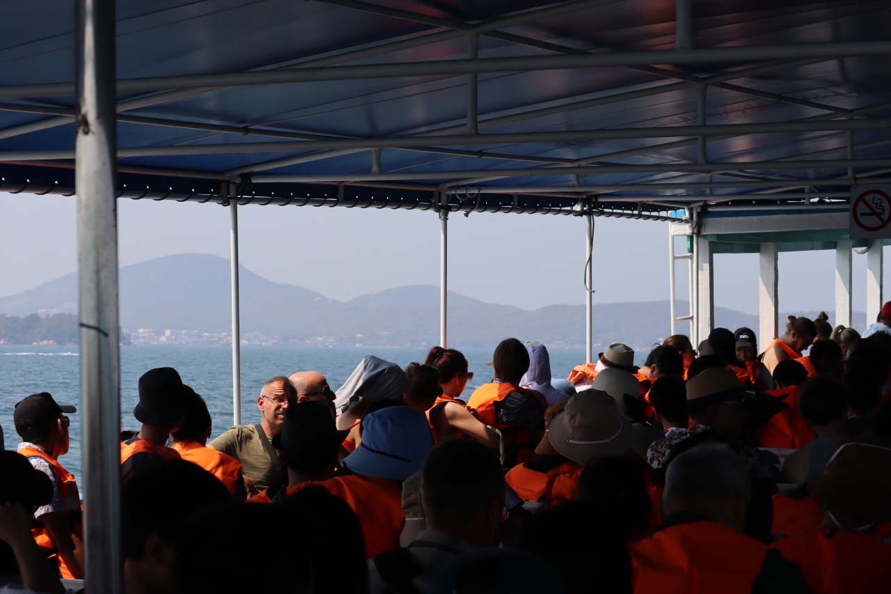 船のタイプと波の状況によりますが、乗船、下船等概ね1時間です。