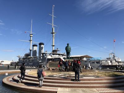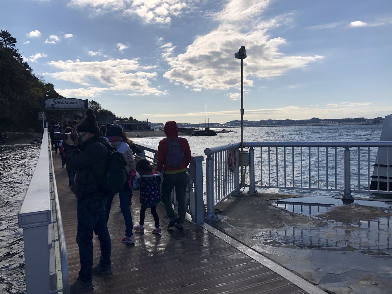 横須賀に猿島以外もう一つ人気な観光行事です。猿島観光終わり、JR横須賀駅に向かう途中で、スターバックスコーヒーを右曲がり、長い乗船待ち列が見えます。切符売り場に入り、お土産、資料なども置いてあります。人はいっぱいです。