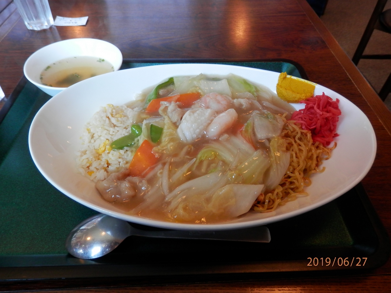 11時開店でしたが10時55分に店を開けてくれました。6名での訪問!メニューはあらかじめネットからコピーをして車の中で吟味(笑)おススメは【あんかけ焼きそば】だそう。私は、チャーハンと焼きそばが一緒の器になった【あんかけ焼きそば&チャーハン】を~♪凄くボリューミーな一品です。開店後、あっという間に満席になり、お待ちも出てきたのでそそくさと食べ、店を後にしました。メニューは食券機で購入します。ガッツリ食べたい方必見です(笑)私は頑張って完食しました~♪- 旅行時期