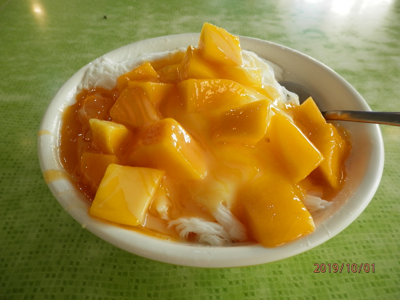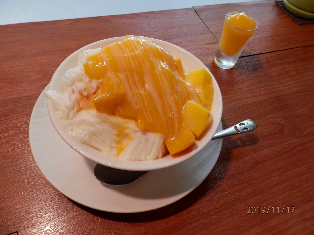 比較的、空いていたのですんなりと入店。もちろん!オーダーは、マンゴーミルクかき氷♪お金を払ってベルを貰います。そのベルが鳴ったらカウンターに取りに行くシステムです。かき氷を作っている所を横でみていましたが器が大きい!!全部食べられるか?と不安になる。そして来ましたマンゴーかき氷♪まず氷を一口…ふわふわ~♪スーッと口の中で溶けます!これだもの納得の繁盛店。マンゴーの時期が時期なので甘みが少なく感じました。旬の時はどれだけ甘いのだろう?食べてみたい…。