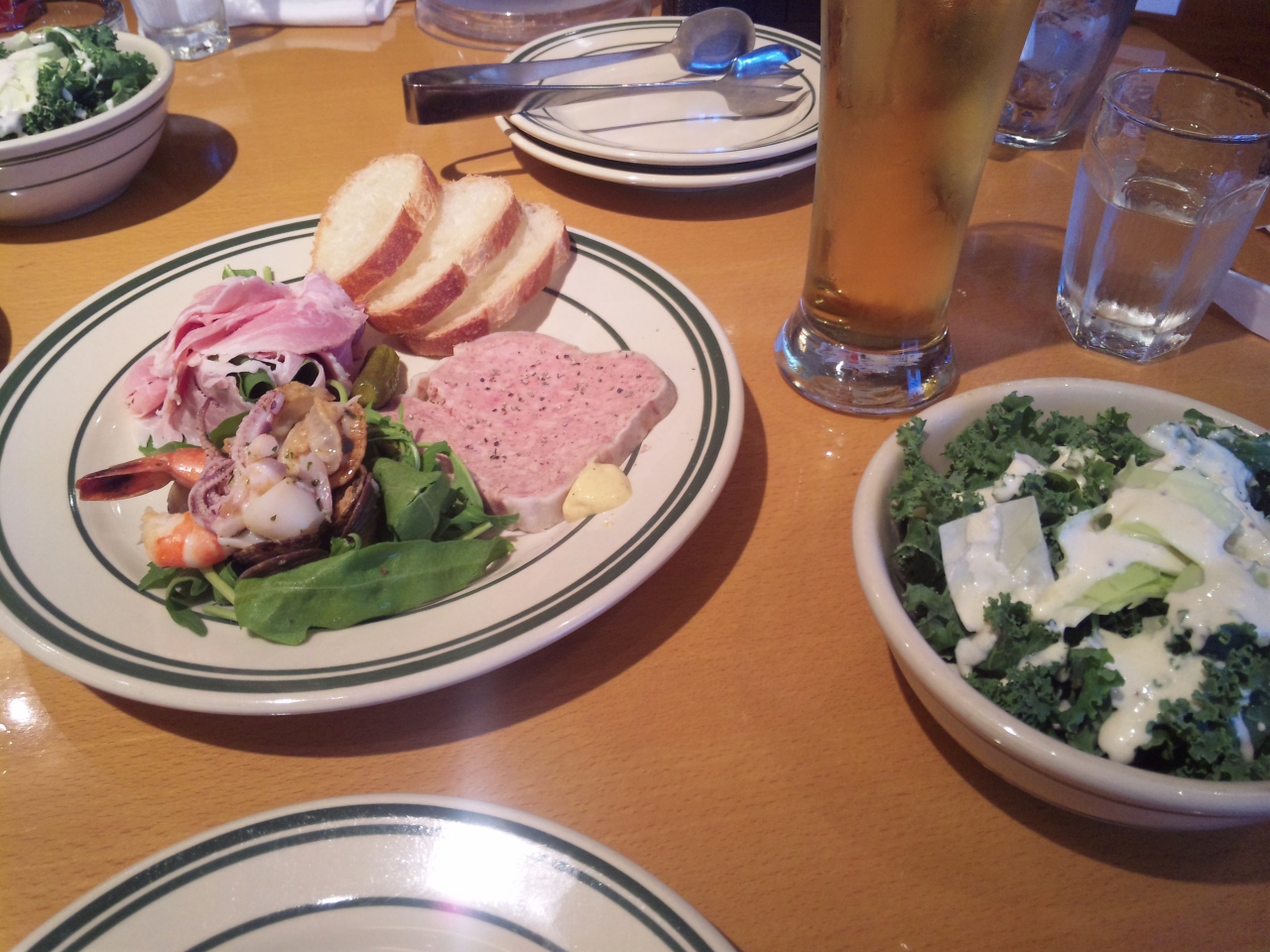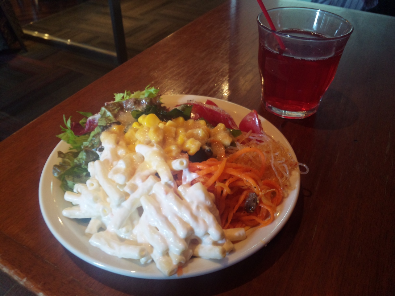 東京に来ると来てしまいます。ここのビュフェの野菜が美味しくて!今日は開店と同時に訪れて時間に余裕が無かったので早く食べられるようにメインはパスタにしました。サラダを一盛り食べて♪メインのパスタ~。ちょっと小盛りかな?と思いましたがお野菜沢山頂いたので丁度良かったです。ニンジンが美味しくてお替わりしました(笑)10月29日からランチのみ1000円以上のメニューが100円引きです♪野菜ビュフェとドリンクバーが付いてます。