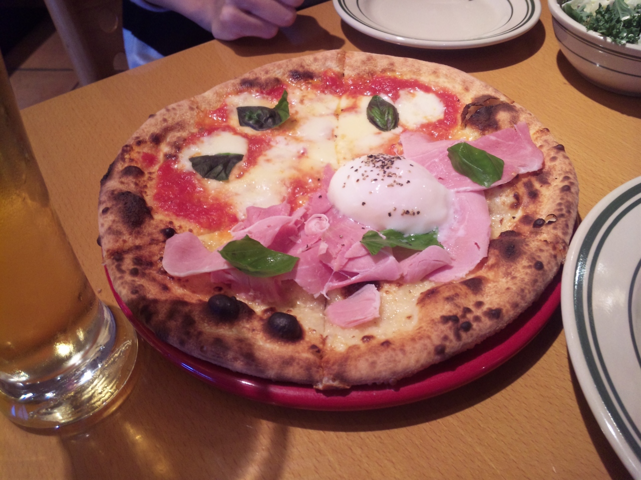 日曜日、友人と訪れました。何処も混雑していました。前から気になっていたお店で友人が来た事あるよ!の一言でここに決めました。席数も多くて賑やかです。ランチでピザ・パスタなどシェアして頂きました♪もちろんアルコールも頂きました~♪ピザもパスタも美味しかった。野菜と食後のコーヒーが付いていました。駅近なので便利ですね。