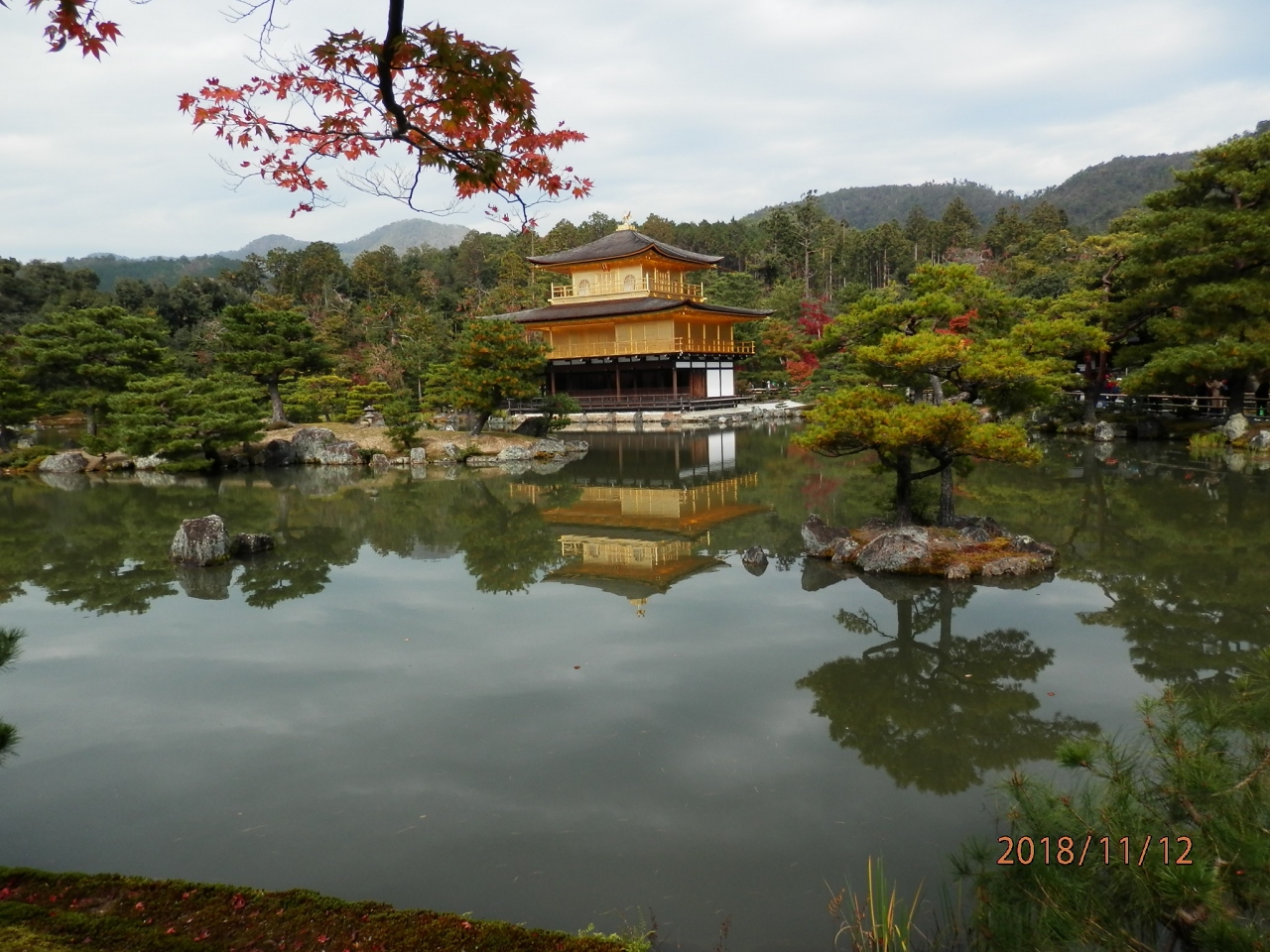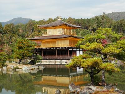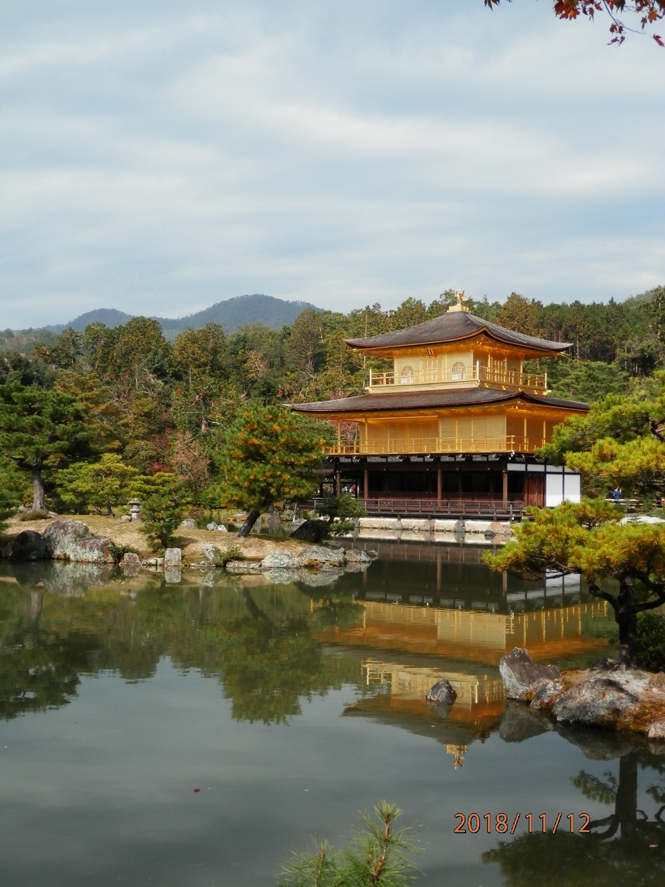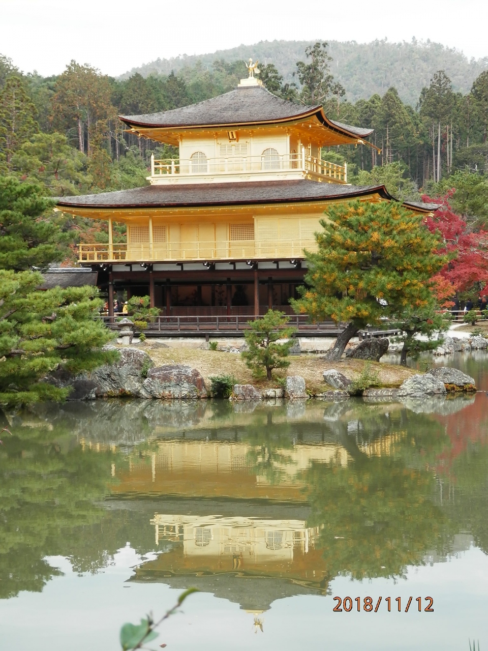 午前中は、ほぼ金閣寺にて終了。あまりの美しさに見とれてしまいました。風も無く、水面に映る金閣寺の素敵でした。天気が良ければさらに最高でした…。修学旅行生と重なって混雑していましたがじっくりと堪能しました。何度見ても飽きません。