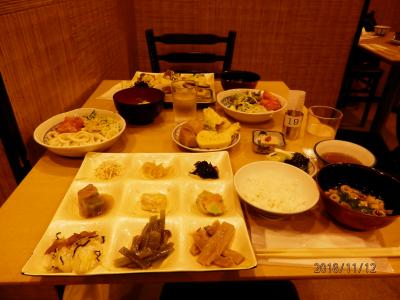 雑誌を見て姉がリクエスト。ランチの時間(13時頃)に行ったら30分待ちと言われて…ランチの時間は14時半までに入れば良いとの事で先に観光する事に。14時過ぎに帰ってきたら待ちも無くスムーズに入る事ができました。料金は1階のレジで先払いです。ズラリと料理が並べられていて少なくなってきたら補給してます。生麩やゆば料理、サラダ・うどん・デザートにグレープフルーツゼリーやプリン・白玉だんごもありました。1時間で2150円は高く感じますが観光地を考えると打倒かな。